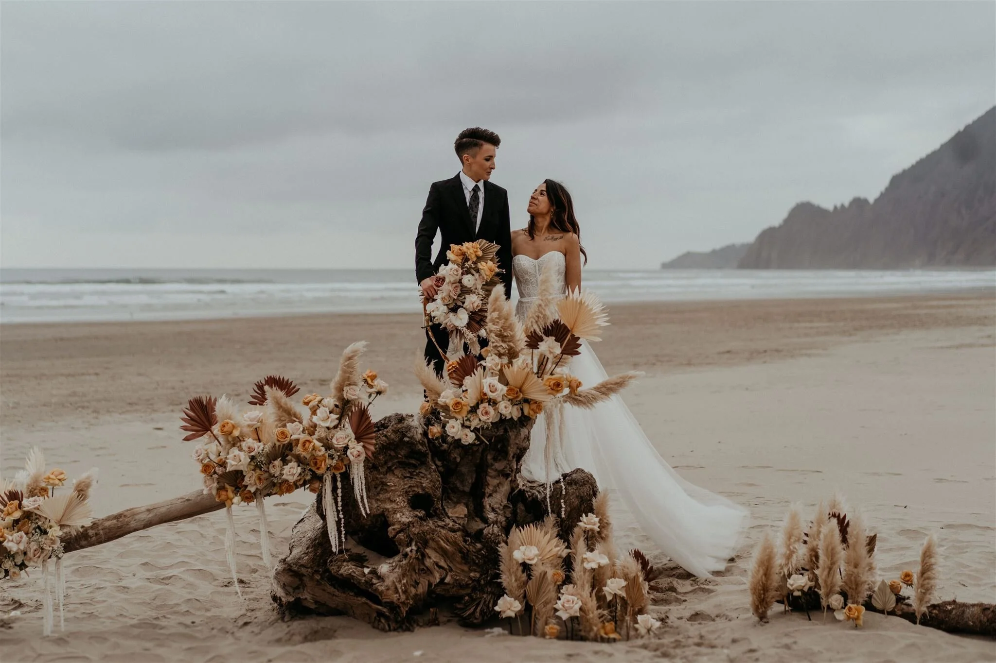 Henry and Viet asked me to be the floral vendor for their amazing Hey Darling photography workshop on the Oregon Coast. We stayed in a giant, insanely beautiful air bnb right on the beach, drank tequila, made so many connections and had the absolute best time ever. Daniel & I modeled for the first sunset shoot (bottom photos) with an epic & huge spring inspired bouquet that I made. The next day I made one of my favorite installations out of driftwood that I collected and built on top of each other right on the vast & empty beach. I created a bouquet with half dried, half fresh pieces to accompany the installation and my new friends, Ella & DJ modeled. I HIGHLY encourage all Henry’s Diary fans to go to his workshop, him and Viet are some of the best people ever and they host the most amazing workshop ever.