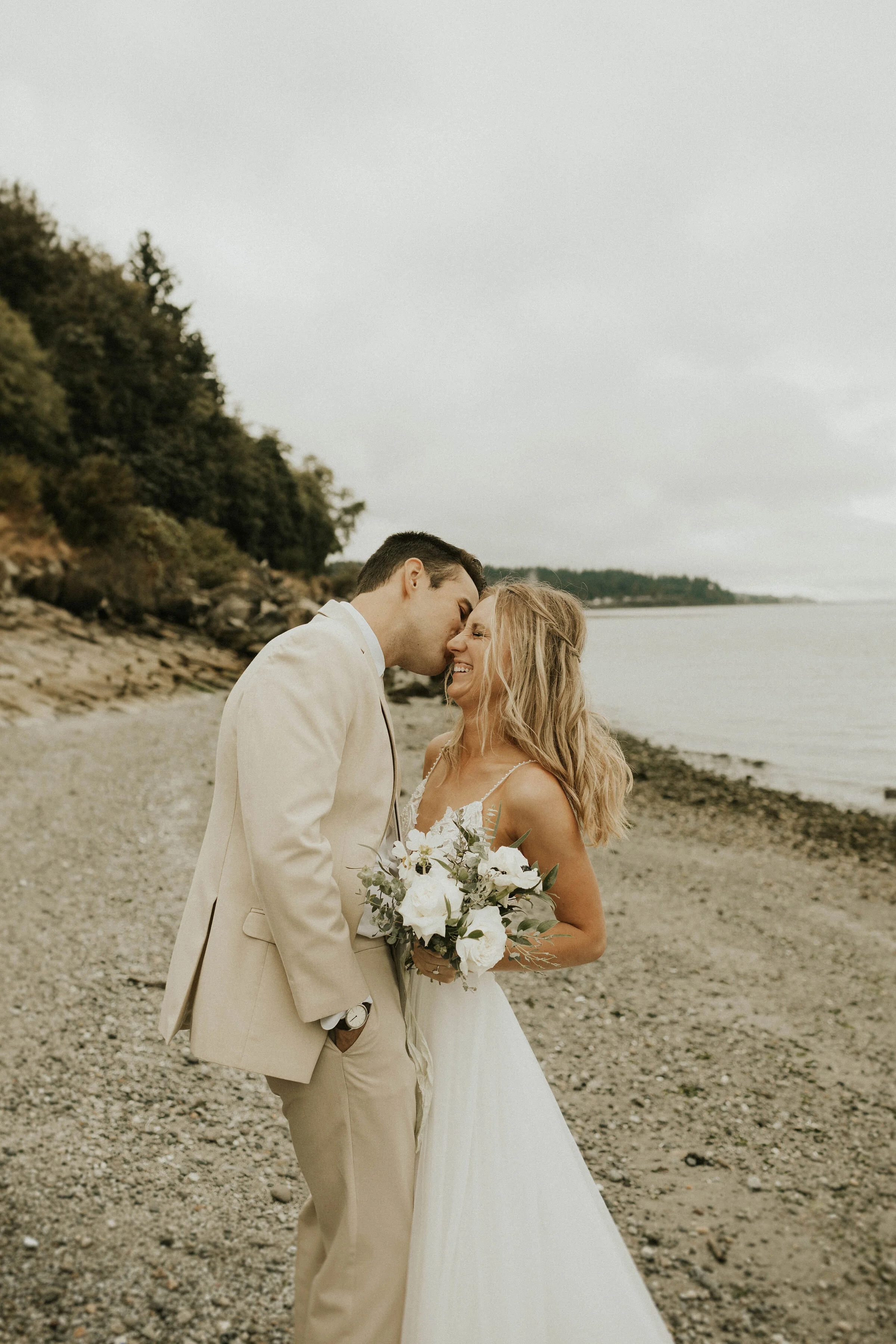 These two met while both being summer camp counselors at this exact camp that they got married at. There were buckets of sunscreen, an aquarium of sea animals, a camp cat strutting around, guys playing guitars, kayaks, a rock wall, and so so so much love and excitement. Not your traditional wedding setting but the location was so special to everyone there, you could feel the loving energy just emitting off of everyone. All photos by Brooke Embree.